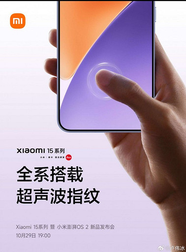 Наконец, серия 15 станет первой среди флагманов Xiaomi с ультразвуковыми сканерами отпечатков пальцев.