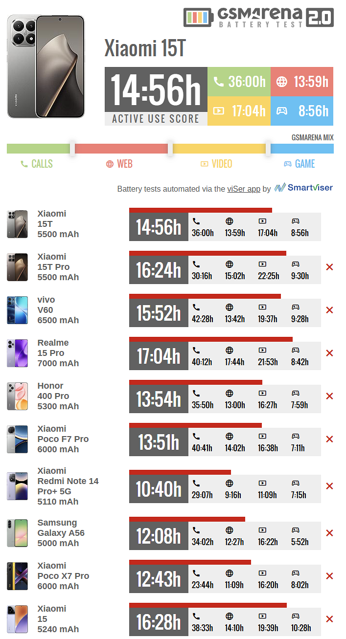Xiaomi 15T показал впечатляющие результаты в тестах на автономность