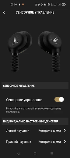 Чтобы иметь возможность настроить наушники, а не просто пользоваться дефолтным сетом, стоит скачать приложение Marshall Bleutooth. Настроек, правда, не так много. Даже эквалайзером нельзя отдельно регулировать частоты — только выбрать одну из предустановок.