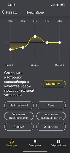 Если говорить объективно, то каждый может изменить звучание под свой вкус с помощью фирменного эквалайзера в приложении Jabra Sound+. В нем уже есть готовые пресеты и панель для индивидуальной настройки частот.
