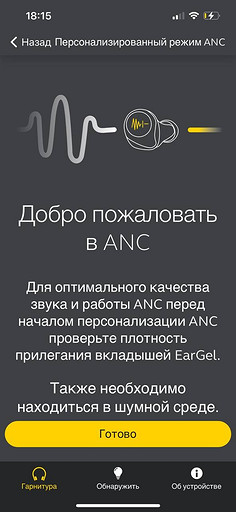 Активное шумоподавление (ANC). Здесь шумодав можно не просто выключить или включить, как в большинстве наушников, но и настроить его интенсивность. Соответствующая функция находится в разделе «Персональная настройка». Здесь предлагают задать как общий уровень шумоподавления, так и по отдельности для каждого наушника — пригодится людям, которые имеют какие-либо проблемы со слухом.