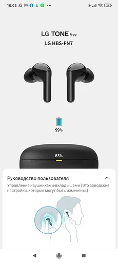 Владельцам LG TONE Free HBS-FN7 стоит скачать приложение LG Tone Free. Именно через него производятся все основные настройки. Здесь можно переназначить логику работу сенсорных панелей на наушниках. Хотя изначально она довольно удобна: для паузы и воспроизведения музыки достаточно коснуться любой из поверхностей, для увеличения громкости — дважды постучать по правому наушнику, а для уменьшения — по левому. На тройное касание можно "повесить", например, переключение треков.