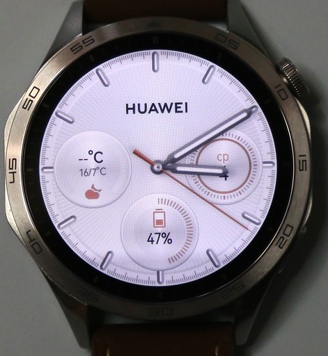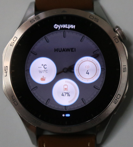 Надо признать, и у HUAWEI WATCH GT 3 экран был прекрасным. Возможно, четвертое поколение его и унаследовало: по крайней мере это все тот же 1,43-дюймовый AMOLED с разрешением 466×466 точек и плотностью пикселей 326 PPI. Яркости хватает с запасом, изображение отлично видно и в помещении, и под солнцем. При этом оно остается хорошо читаемым и под большими углами наклона — лишь немного меняется оттенок.