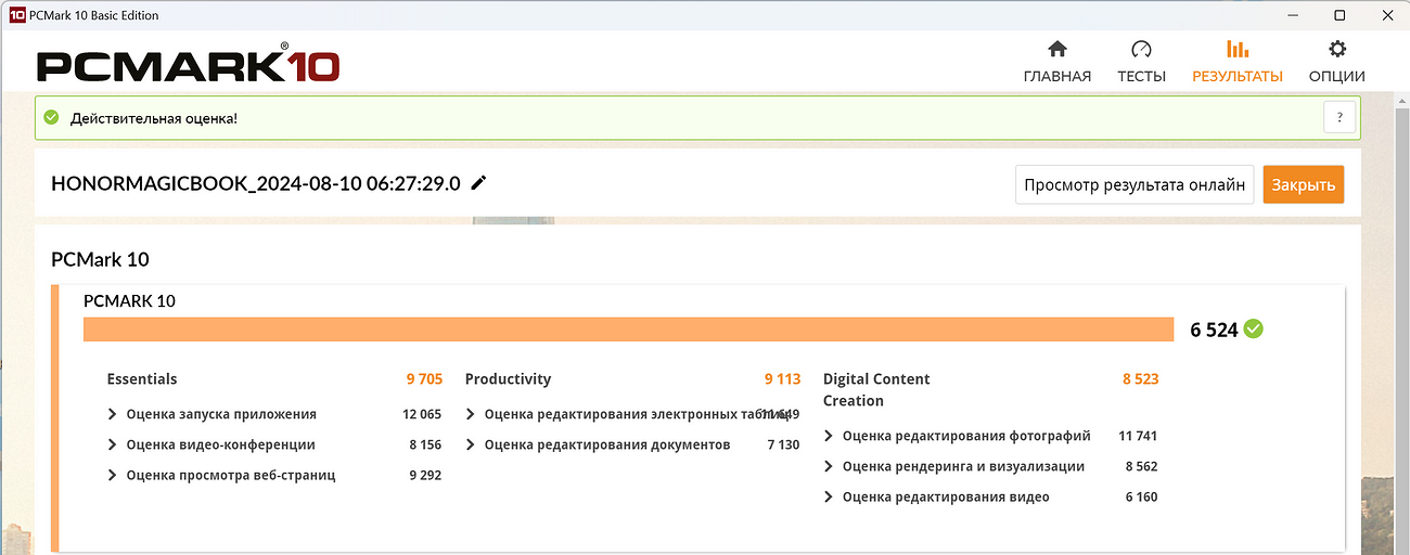 PCMark 10 подтверждает позиционирование ноутбука: где-то между офисным и игровым.