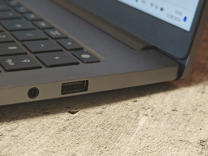 Все необходимые разъемы есть. Основные находятся слева: это два USB-C, которые можно использовать для обмена информации и зарядки (а один еще и для подключения монитора по DP), USB-А 3.2 Gen1 и HDMI 1.4. Такой же USB-А 3.2 Gen1 расположен на правом торце — его удобно использовать для подключения мыши. Наконец, аудиоджек 3,5 мм тоже можно найти справа. Не хватает разве что картридера, но он нужен далеко не каждому.