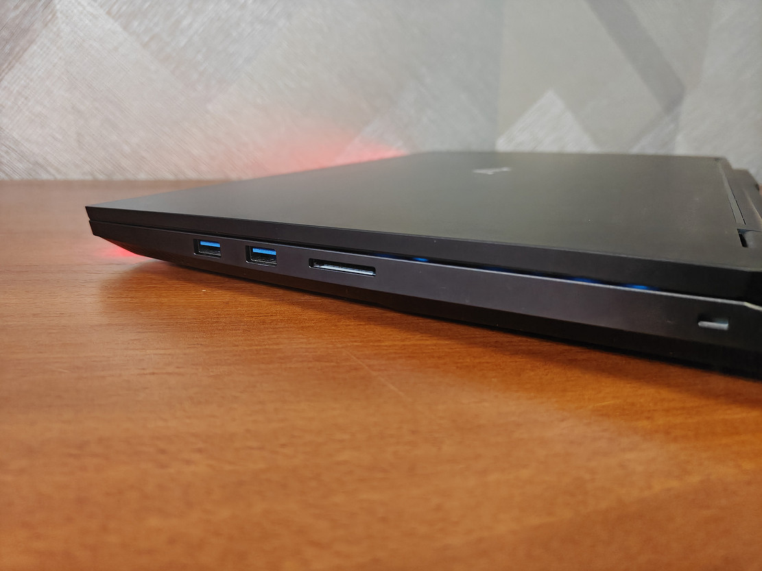 Ноутбук Maibenben X-Treme Tsunami X16E также приятно удивляет количеством портов. После ультрабуков уже начинаешь невольно забывать про существование некоторых разъёмов и привыкаешь повсюду таскать с собой хаб. Зато здесь есть всё, что нужно сразу из коробки: два USB‑C (3.2 Gen 2), три полноразмерных USB‑A (3.2 Gen 1), HDMI 2.1, mini DisplayPort 2.1, слот для карт microSD, RJ45 для проводного интернета, аудиоразъём для микрофона и наушников, а также отдельный порт под внешний водоблок.