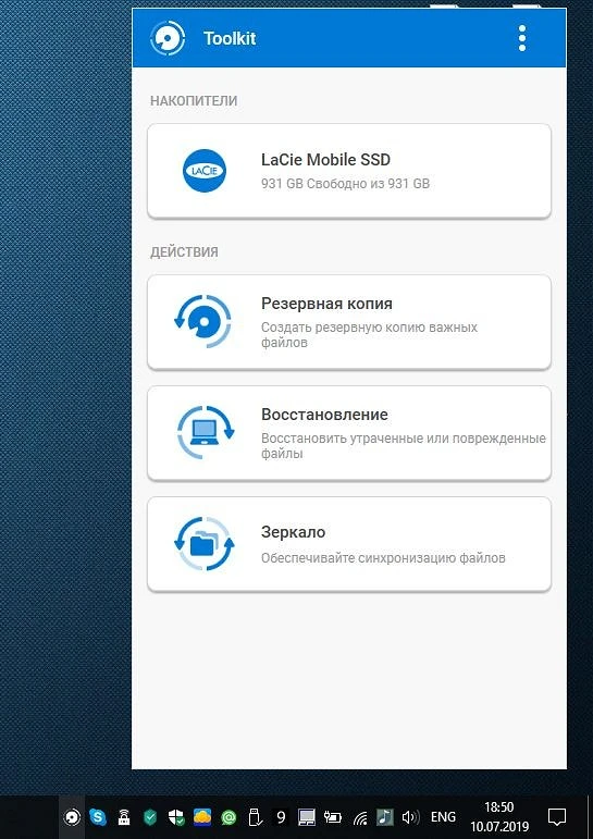 На диске производитель разместил программу для регистрации пользователя на сервисе LaCie и загрузки утилиты для резервного копирования — LaCie Toolkit. Это компактный набор инструментов, позволяющий выполнять резервное копирование с ПК на внешний носитель в автоматическом режиме. В случае необходимости с его помощью можно сделать и восстановление данных. Кроме того, в данной утилите предусмотрен режим зеркалирования файлов из выбранной папки на ПК на SSD диск. Здесь все достаточно просто, но отметим, что тонких настроек в этом ПО нет.