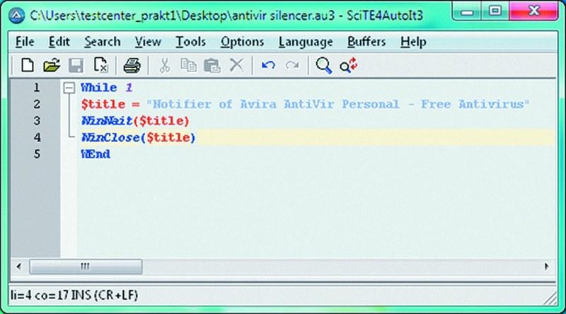 Мы рассмотрим создание скрипта, автоматически закрывающего окна с рекламными объявлениями (в нашем примере — бесплатной программы Avira AntiVir). В результате всплывающее окно будет устраняться еще до того, как успеет отобразиться на экране. Кроме того, данный пример позволит вам ближе познакомиться с эффективным инструментом для создания скриптов. Полезные функции, предлагаемые AutoIt, дадут вам возможность в дальнейшем решать и другие задачи по автоматизации управления компьютером.