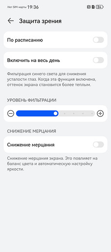 Разумеется, пользователю доступны все необходимые настройки. Это и выбор частоты обновления, и цветовой режим, и режимы защиты зрения. В последнем причем можно установить уровень фильтрации синего света.