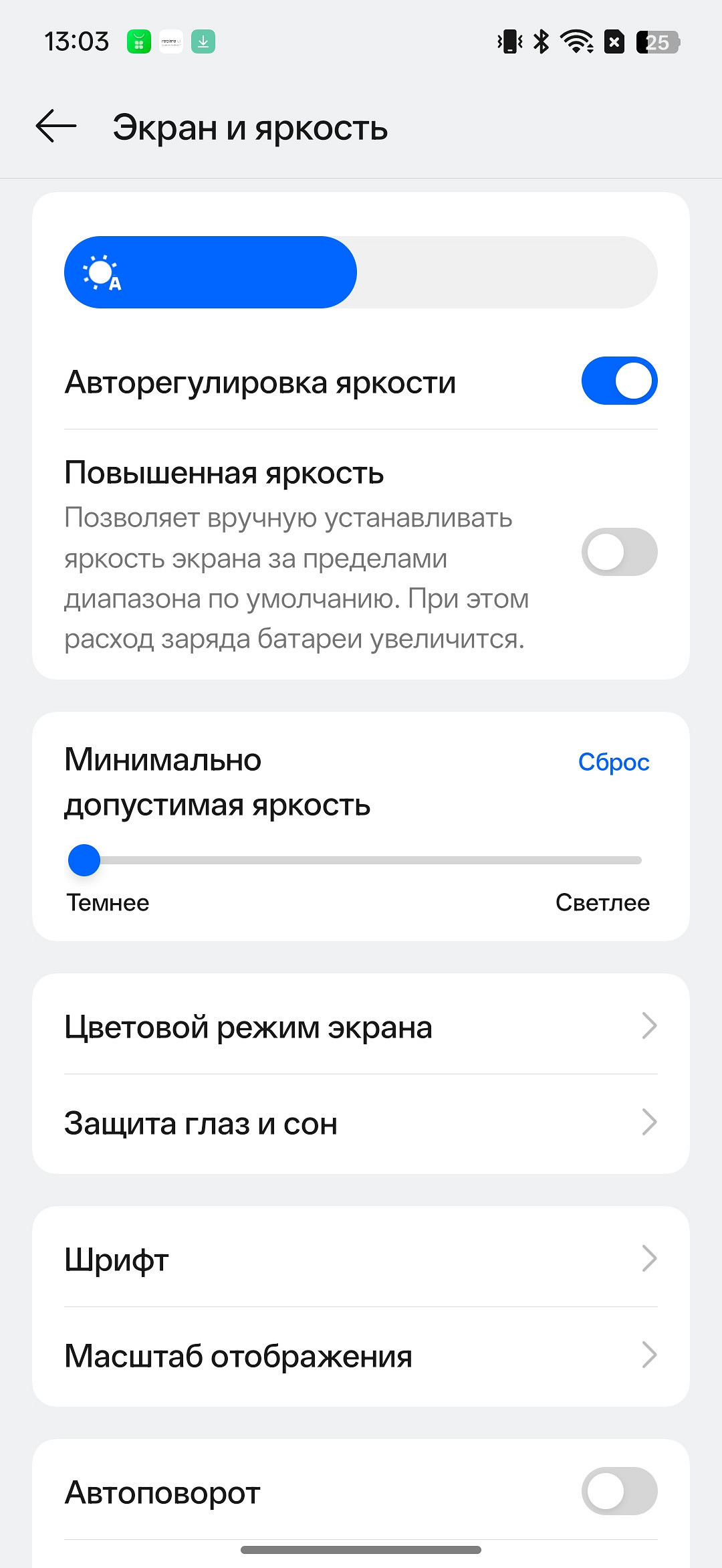 Также доступен выбор минимальной яркости при использовании авторежима и подходящий режим защиты зрения. Традиционно можно установить режим защиты зрения, отрегулировать цветовую температуру, даже включить имитацию структуры бумаги.