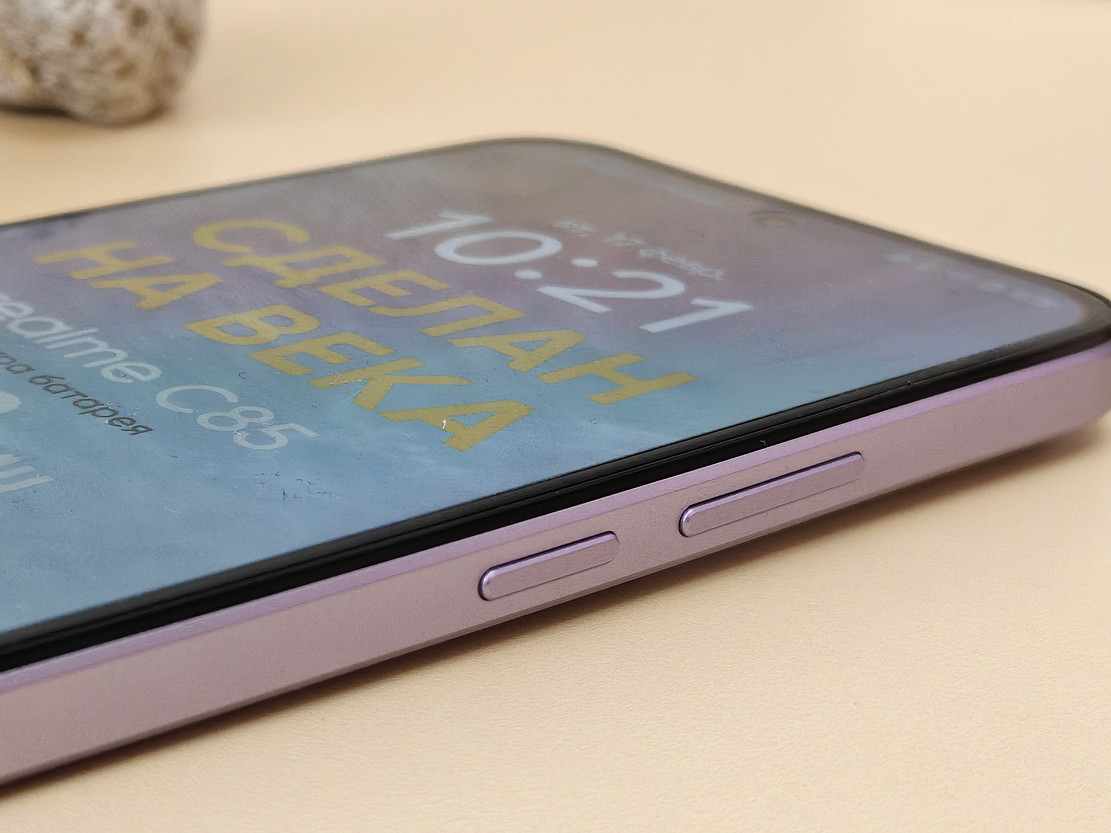 Интересно, что realme C85 Pro предлагают в двух цветах: фиолетовом (как на наших фото) и темно-зеленом. Никаких белых, черных, серых. Разве что в базовом realme C85 темно-серый цвет все же присутствует.