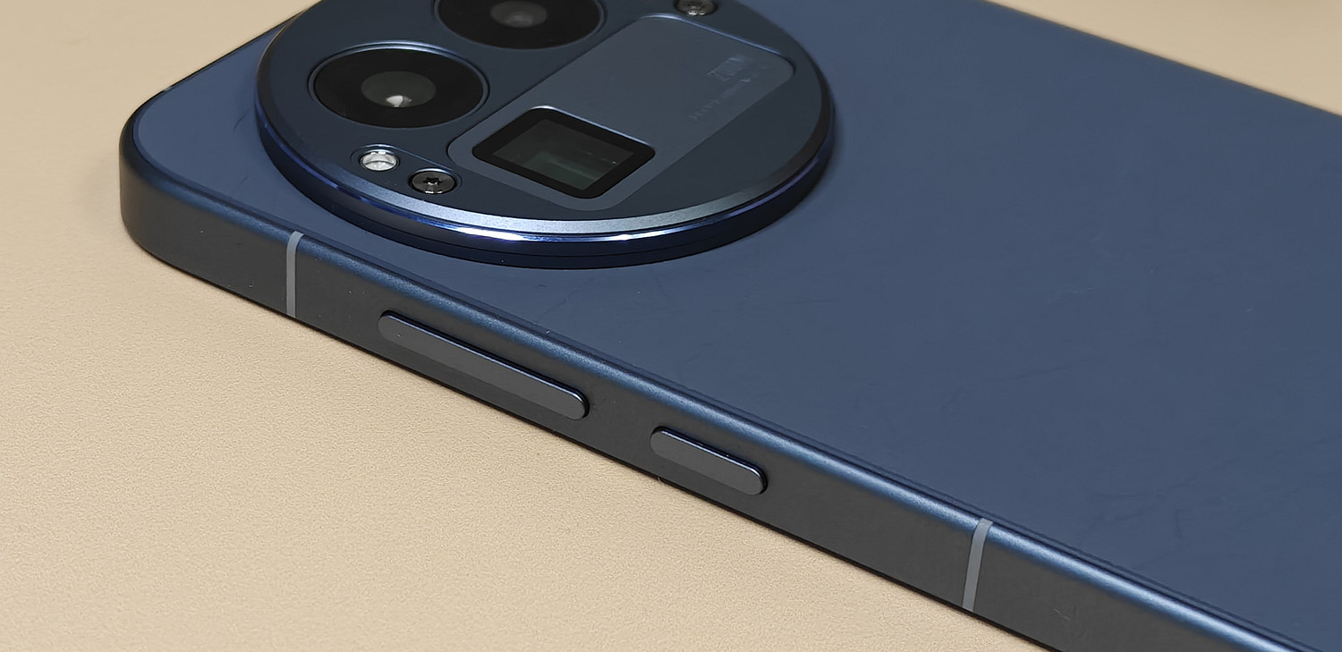 Честно говоря, я рад, что realme не стал экспериментировать со внешностью кардинально. То есть это по-прежнему смартфон с плоскими экраном, задней панелью и боковой рамкой — как мой GT7 Pro. Что тот, что другой безумно не хочется прятать в чехлы. Даже штатные, которые садятся идеально и выглядят симпатично. В синем цвете задняя панель отделана экокожей, которая тактильно напоминает бумагу и, разумеется, не собирает отпечатков пальцев. Вариант с белым цветом попроще — там просто стекловолокно. Рамка выполнена из алюминия и окрашена в цвет корпуса.