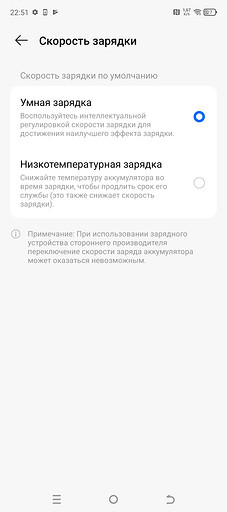 Несколько интересных функций можно найти в разделе настроек зарядки. В частности, меню предлагает понизить температуру, чтобы продлить ресурс зарядки. Что ж, тоже полезно, хотя 45 Вт все же не настолько много, чтобы переживать за аккумулятор.