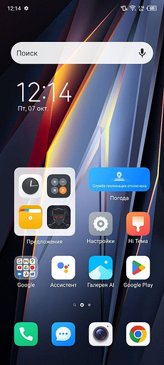 Смартфон работает на базе Android 12. TECNO дополнительно использует фирменную оболочку HiOS. При первом включении гаджет предлагает установить некоторые полезные приложения: Госуслуги, VK, браузер Яндекс. Если вам что-то не нужно, просто снимите галочку при выборе — тогда программа не установится. Никаких лишних или рекламных утилит на смартфоне нет, что особенно удобно — не придется ничего удалять.