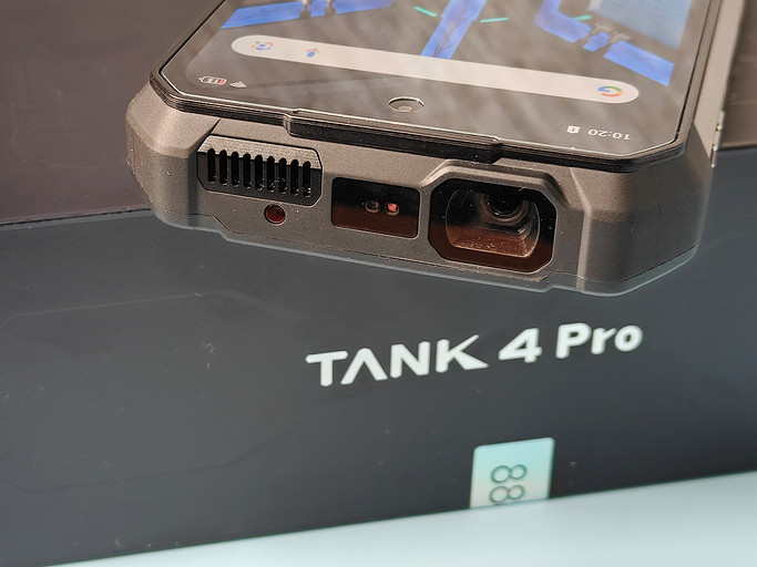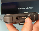 В этом плане TANK 4 Pro максимально похож на прежнюю модель. Тот же мощный корпус с прорезиненными вставками, большой светодиодный фонарь по центру задней панели, удобное крепление снизу для протяжки шнурка (можно прицепить смартфон карабином к одежде). Разве что блок камер немного изменили.