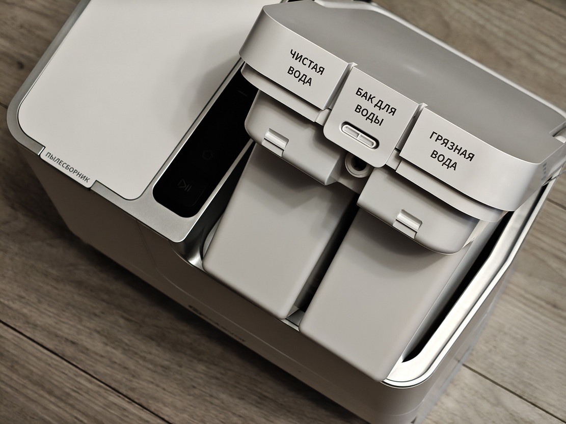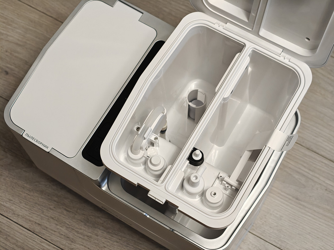 Модель Plus получила станцию самоочистки нового дизайна. Довольно интересную, относительно компактную и с крупной панелью индикаторов. По панели, например, можно сразу понять, что в баке не хватает воды.