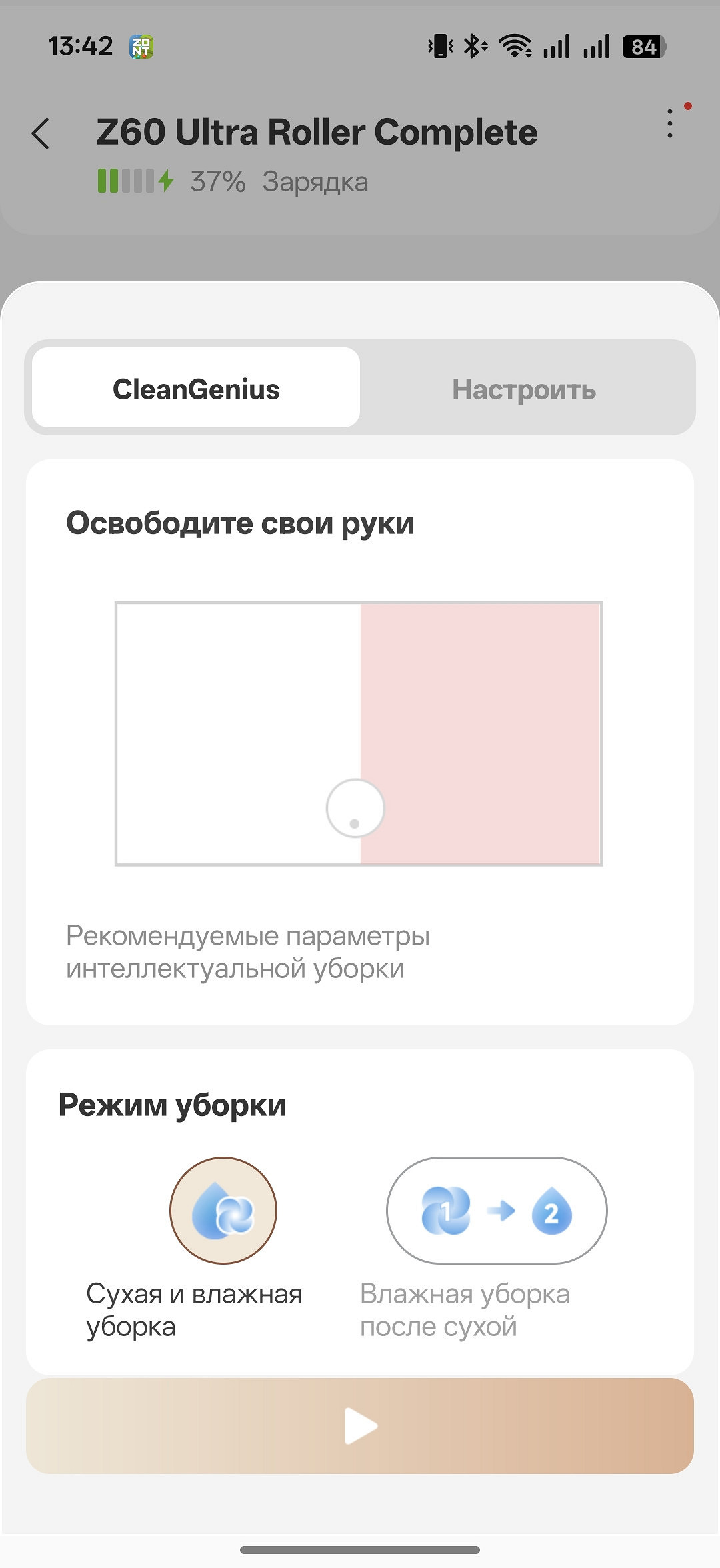 Также нужно не полениться разобраться с другими настройками. Например, можно вручную выбрать приоритетный режим уборки, хотя мы рекомендуем использовать автоматический CleanGenius.