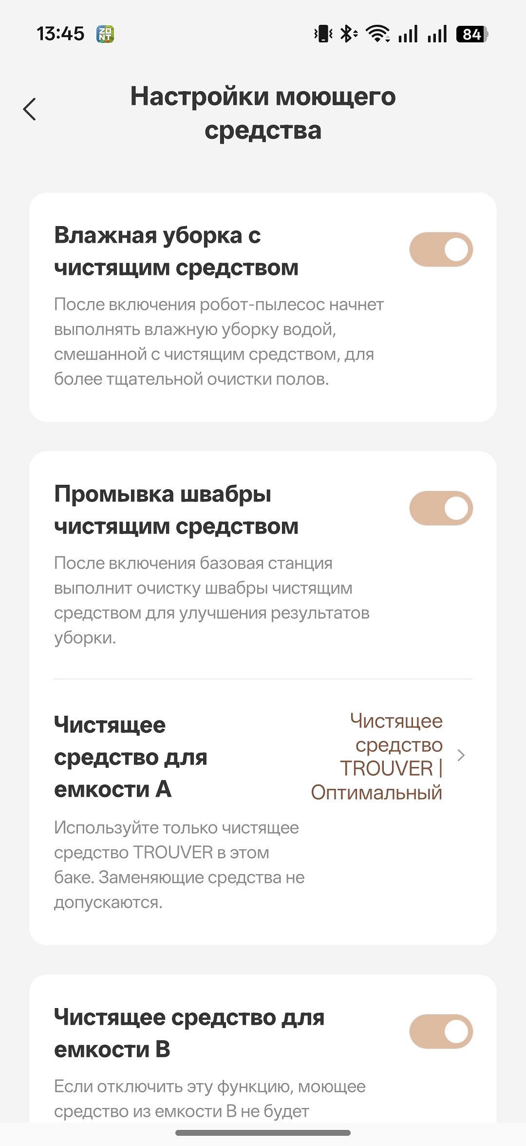 Поскольку Trouver Z60 Ultra Roller Complete — одна из топовых моделей производителя, в ней реализованы все флагманские технологии, которые есть в распоряжении бренда. По сравнению с предыдущим поколением изменилось все: даже станция самоочистки. Теперь в ней появились два отсека для моющих средств (система DuoSolution). В один заливают основное, для ухода за полом, а во второе — специализированное, которое дополнительно избавляет от запахов. Такое будет очень кстати при наличии дома питомцев.