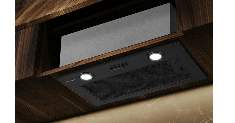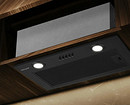 Это модели, которые полностью скрыты в корпусе навесного шкафа. Снаружи остается только узкая щель для забора воздуха или тонкая декоративная рамка в цвет фасада. Управление чаще всего вынесено на нижнюю панель шкафа (кнопки или слайдер) или реализуется через скрытые сенсорные элементы.