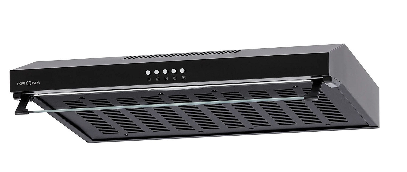 - Krona OSTEN 600 оснащена антивозвратным клапаном, который автоматически открывается при работе вытяжки, пропуская загрязненный воздух в вентиляционный канал, и закрывается после выключения прибора, предотвращая обратный поток воздуха, посторонние запахи, пыль и холод из общей шахты или с улицы.