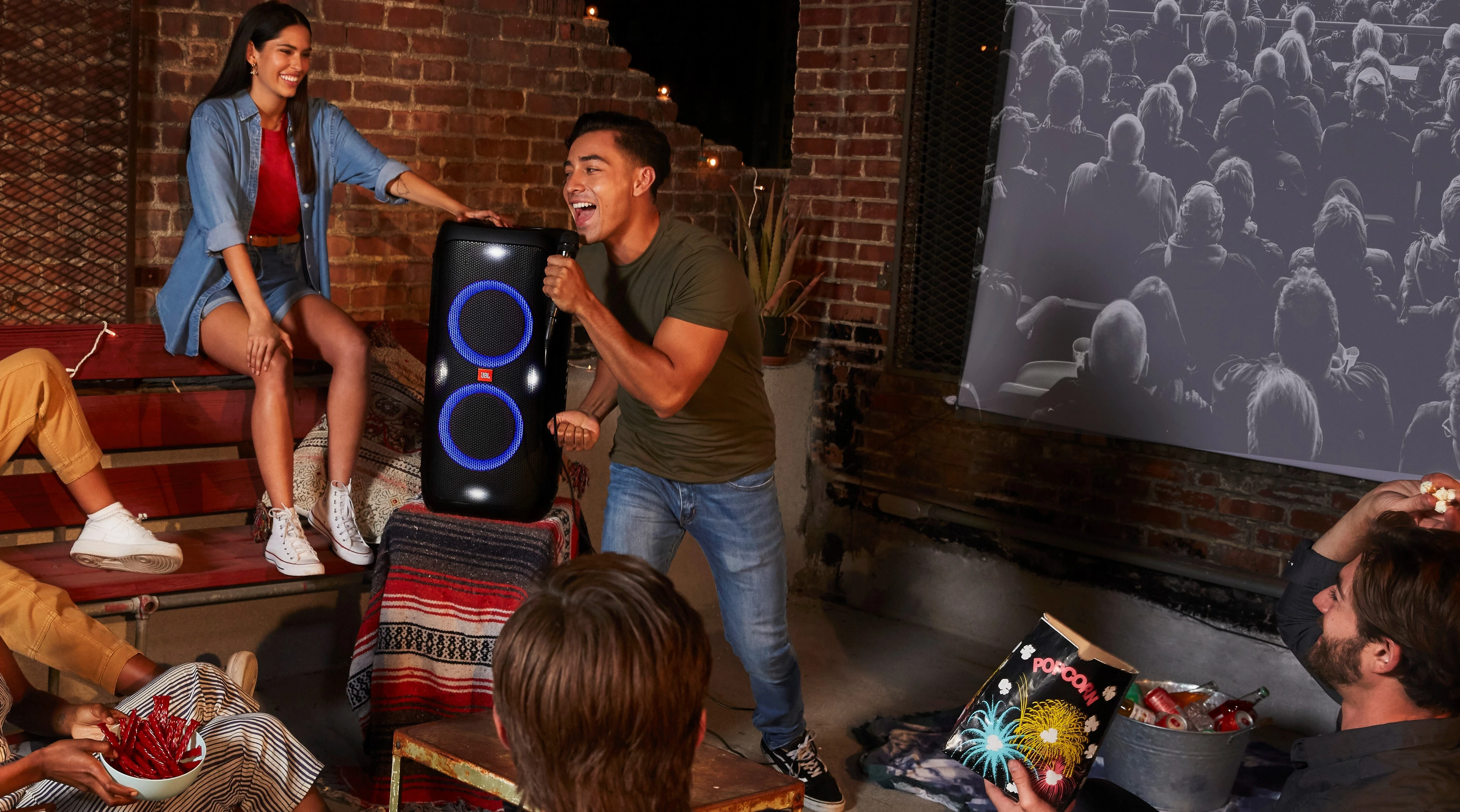 Новый «Патибокс» от JBL — это очередная «фабрика настроения». 240 Вт звука, настраиваемые световые эффекты, возможность подключения микрофона, и все это в защищенном по IPX4 корпусе.