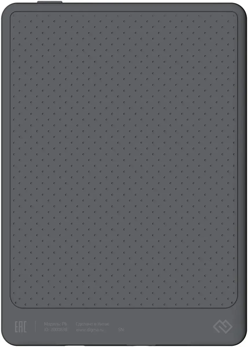 Digma P6 имеет компактный размер экрана 6 дюймов, разрешение составляет 1448x1072 точек. Книга может работать практически со всеми популярными форматами файлов: EPUB, PDF, MOBI, DJVU, FB2 и другими. Объем встроенной памяти довольно большой — 32 ГБ.