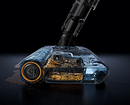 В пылесборник вмещается до 760 мл мусора, что также является одним из лучших показателей в классе. В комплекте с пылесосом идет турбощетка, тонкая насадка-валик, 2 насадки с щетинками разной жесткости, комбинированная и тонкая насадки для уборки в щелях, мини-электрощетка для уборки шерсти и волос и изогнутая трубка для уборки труднодоступных мест.