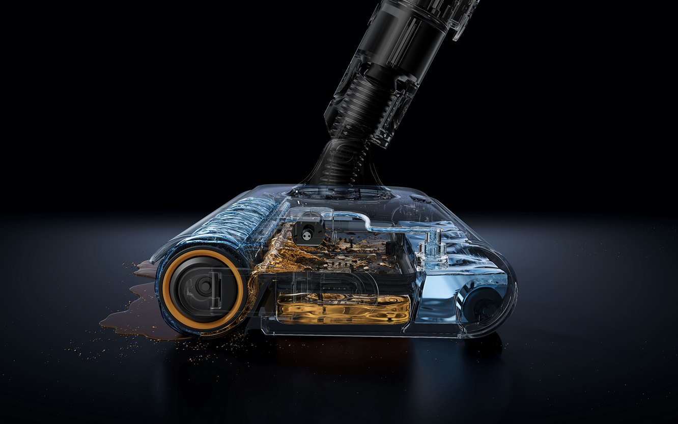 Причем ручка Dreame Z20 AquaCycle может раскладываться до горизонтального положения, так что вымыть пол получится даже под мебелью. Кстати, в таких темных местах отлично работает система обнаружения пыли CelesTect (это уже на основной щетке). За счет подсветки вы видите всю пыль на полу, поэтому не пропустите ни одного участка.