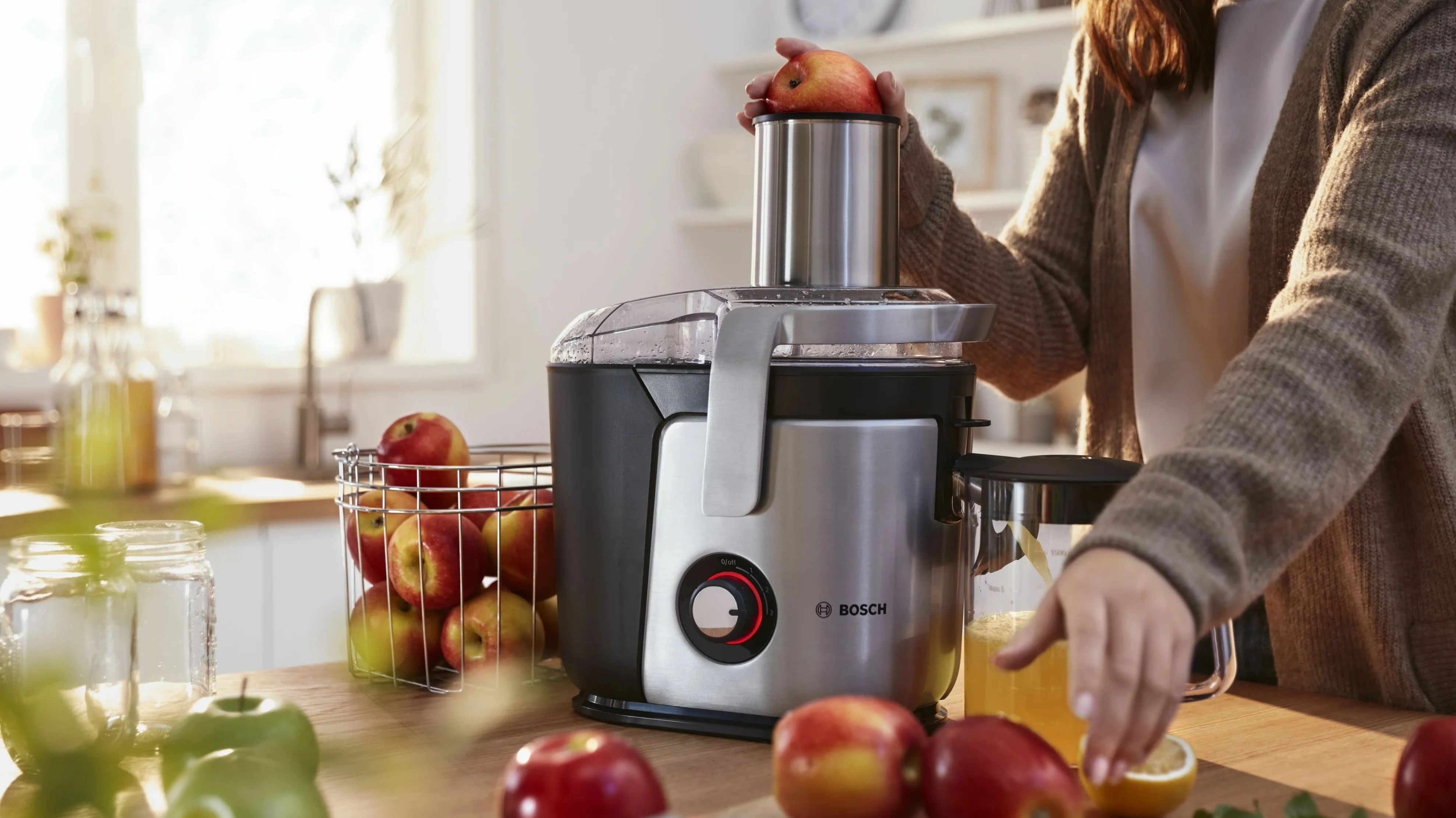 Скоростных режимов два: для мягких плодов (вроде персиков, груш и ягод), и для твёрдых (яблок, свёклы). Ещё и горловина широкая, 85 мм — не придется мелко нарезать продукты.