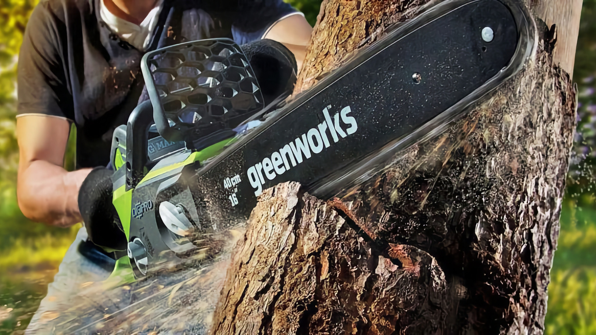 Тем, кто не хочет связываться ни с бензином, ни с проводами, можем посоветовать аккумуляторную пилу Greenworks GD24CS30. Ее можно купить примерно за 10 000 рублей, но без аккумулятора. Впрочем, если у вас уже есть техника из линейки Greenworks 24 В, подойдет та же батарея.