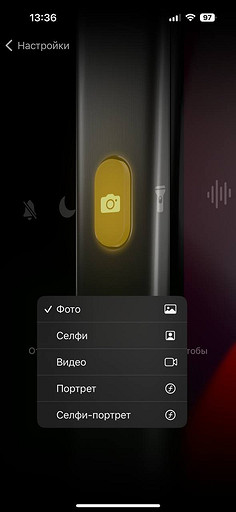 Долгим касанием можно запустить камеру. Причем в настройках можно выбрать режим съемки.
