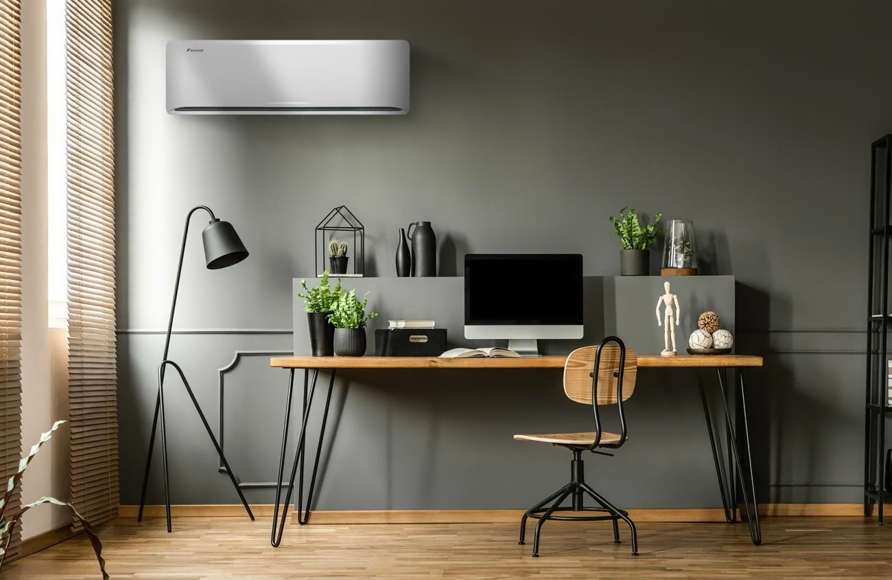Оптимальное место для установки кондиционера — на стене, расположенной сбоку от окна. В таком случае вы разделяете источник тепла (солнечные лучи в окне) и комнатный климат при помощи холодной завесы. Это позволяет равномерно распределять воздух по всему помещению.