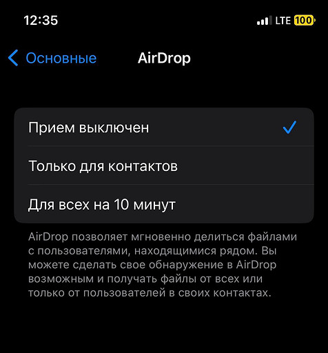 Чтобы AirDrop заработала, нужно включить Wi-Fi и Bluetooth. После зайти в настройки и перейти в раздел «Основные», а после — в AirDrop. Нажимаем. Выбираем, для кого передаем данные — для всех или только для контактов.