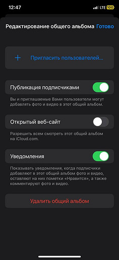 Также можно создать, например, общие альбомы и указать пользователя, с которым нужно ими поделиться.