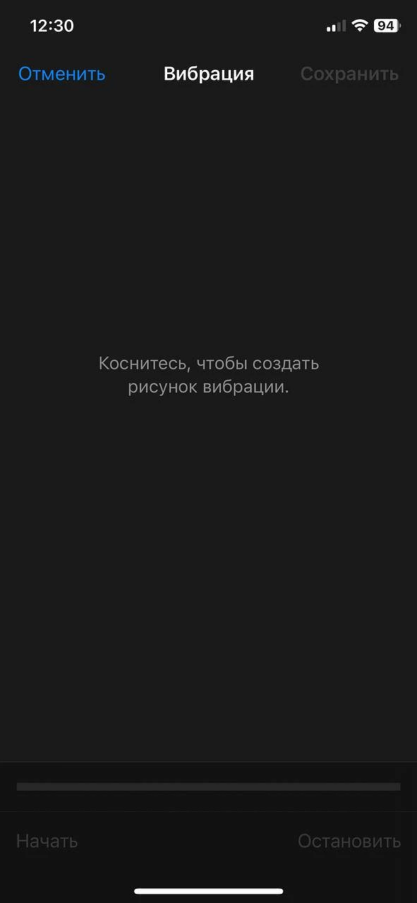 Обратите внимание на доступность еще одной интересной функции: можно создать свою вибрацию в разделе, который так и называется — «Создать вибрацию». Для этого достаточно просто тапать по экрану пальцем. Вот скрины, которые помогут вам разобраться как изменить вибрацию на Айфоне