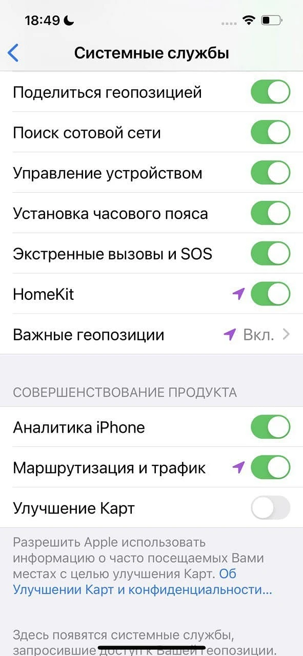 По умолчанию все айфоны сохраняют историю ваших перемещений — это встроенная функция системы, которая будет всегда работать, пока вы ее не отключите. Вот как это можно сделать: