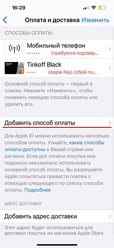 - Если вы раньше не оплачивали ничего со счета телефона, то выберите пункт «Добавить способ оплаты».