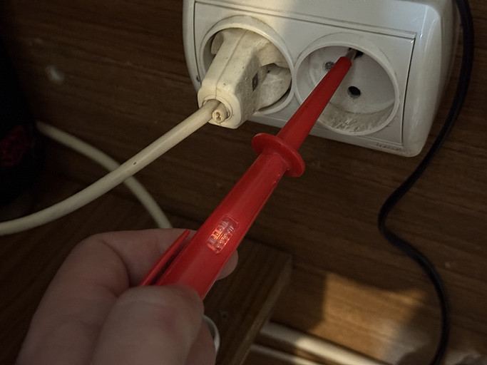 Конечно, высокая чувствительность тестеров мешает при классической прозвонке розеток, но зато будет полезным свойством при поиске скрытой проводки в стенах. Дело в том, что самые чувствительные отвертки могут реагировать не только на ток при непосредственном прикосновении к проводу, но и на некотором расстоянии от него. Как правило, «чуйки» на 1-2 см может быть достаточно, чтобы обнаружить примерное местонахождение кабеля в стене.