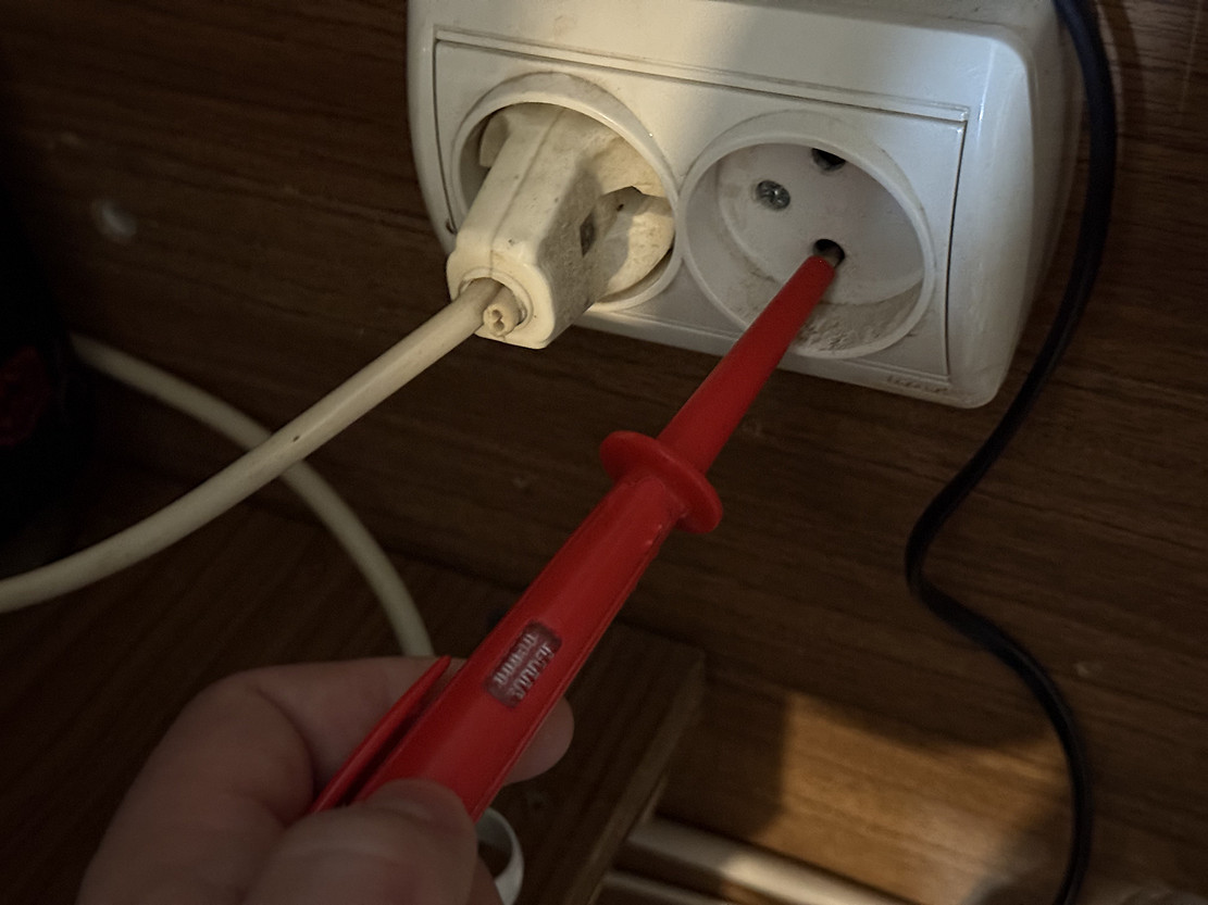 - В другую руку возьмите провод и прикоснитесь к одному из оголенных концов. Не забудьте обесточить систему!