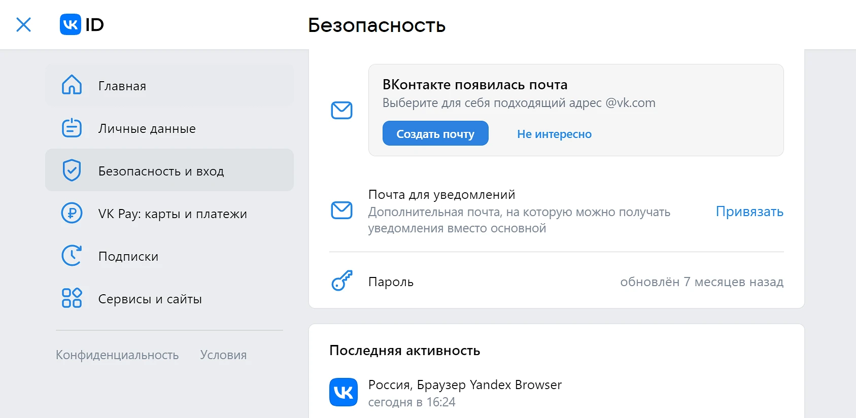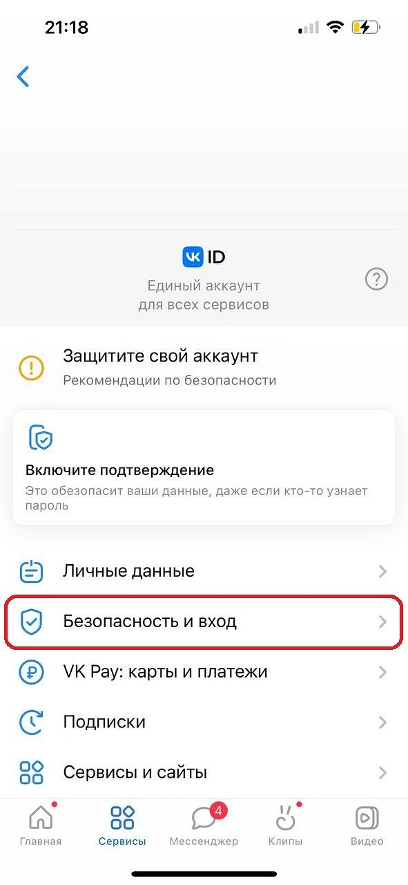 - Перейдите в раздел «Безопасность и вход» — «Пароль»