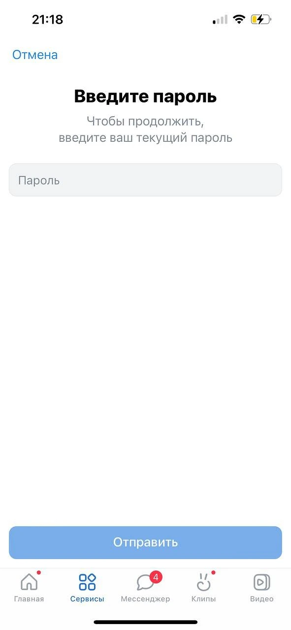 - В появившемся поле введите текущий пароль. Это необходимо для подтверждения вашей личности и согласия на дальнейшие изменения.