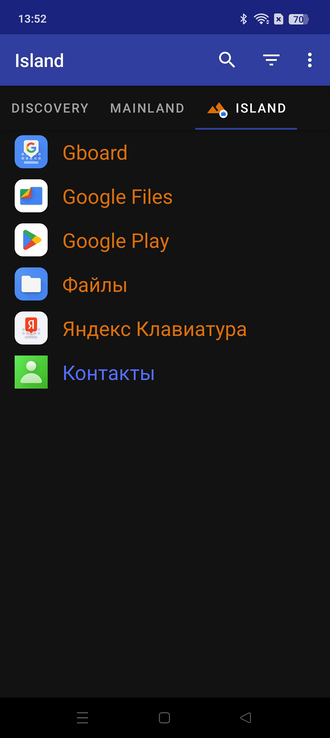 После этого приложение можно будет открыть как с помощью Island, так и с рабочего стола смартфона Android. Причем все установленные в изолированном пространстве приложения будут помечаться значком замка и не получат доступ к «основному» гаджету.