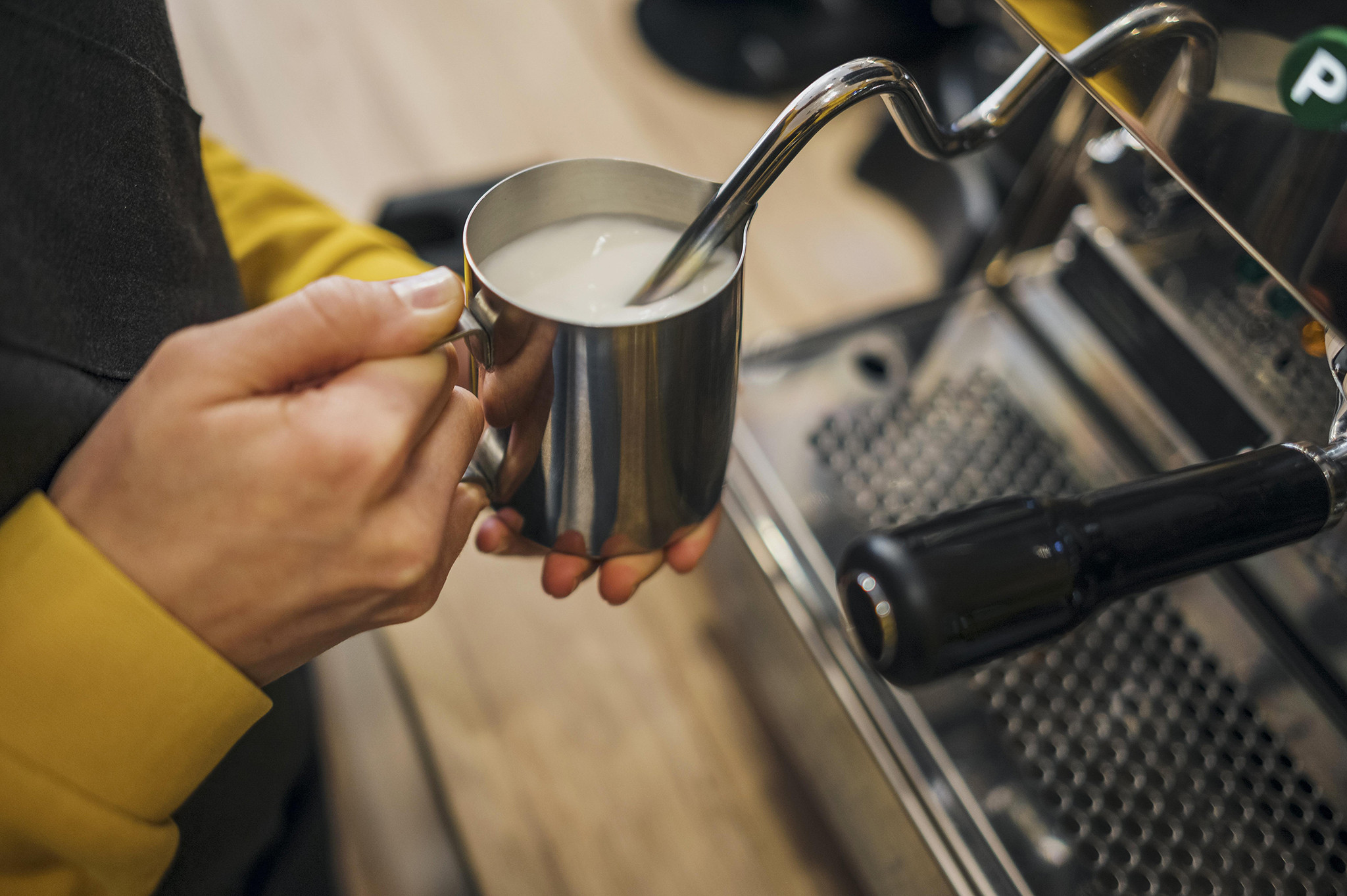 - Там молоко одновременно нагревается паром из бойлера и насыщается воздухом через специальное отверстие — так получается пена нужной плотности.