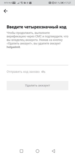 - Далее на привязанный к аккаунту телефон придет код подтверждения. Это нужно для того, чтобы злоумышленники не могли удалить страницу человека, который не давал на это своего согласия.