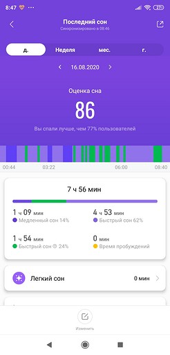 В приложении Mi Fit, через которое работает браслет Xiaomi, похоже, есть ошибка. По крайней мере, мы обнаружили две графы «Быстрый сон». Есть версия, что в одной из них должен быть показан «Легкий».