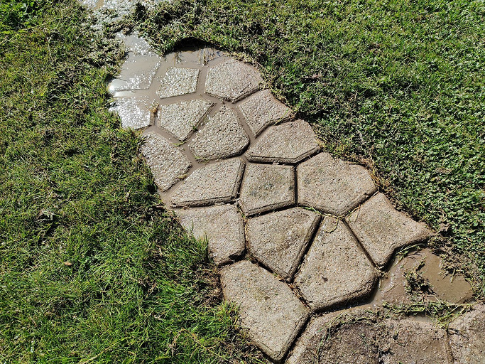 Бетонные дорожки со временем темнеют: в поры на поверхности забивается грязь. Кроме того, в целях между плиткой обязательно прорастет трава. Выдернуть ее не так просто: стебли просто отрываются при попытке вытянуть, а подлезть к корням невозможно.