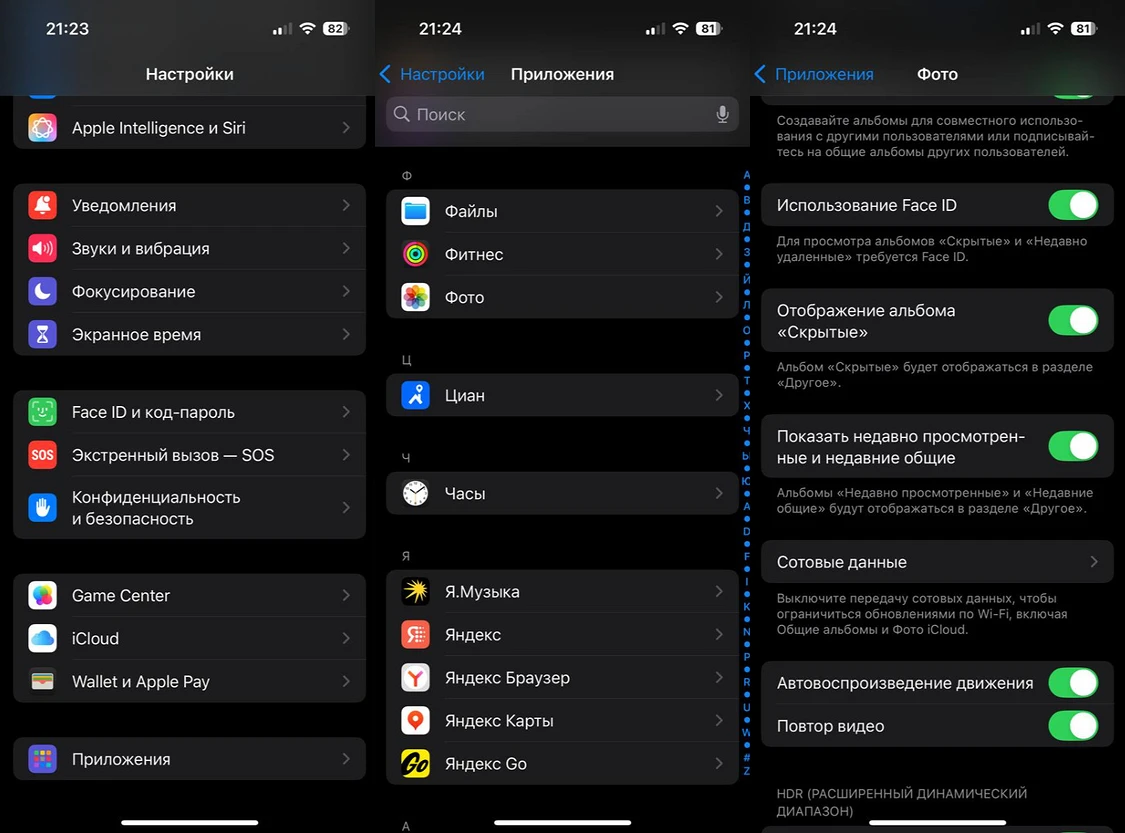 - Зайдите в Настройки → «Приложения» → «Фото».