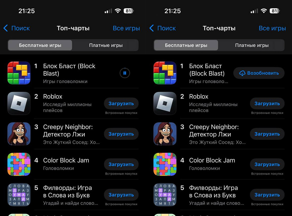 Эта эпоха подошла к концу! В iOS 18.4 прямо в App Store появилась кнопка «Пауза» при загрузке. Нажали, отвлеклись, потом нажали «Продолжить» — и загрузка пойдет с того же места. Гениально и просто! И время сэкономит, и драгоценный мобильный трафик.