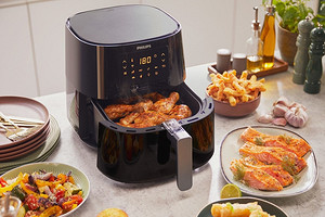 Поскольку приготовление идет за счет обдува горячим воздухом, у аэрогрилей есть одна проблема: они сильно сушат продукты. Но и с этим научились бороться: в некоторых последних моделях дополнительно установили емкость с водой. Пар в камере позволяет добиться баланса: не сильно подсушить продукты, но при этом обеспечить хрустящую корочку. Такая «фишка» есть, например, в Dreame Tasti AF30.