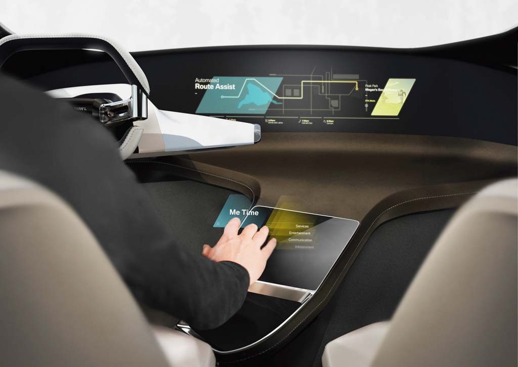 С помощью зеркальных проекций дисплей в концепте BMW отображает кнопки в пространстве, а ультразвуковой генератор формирует тактильный отклик для пальца пользователя.